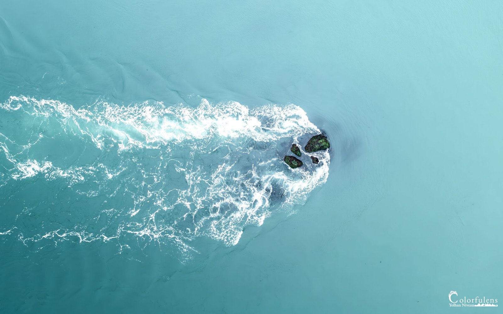 Pourtant, ce n’était pas seulement le héron qui donnait à cette journée son caractère unique. En volant mon drone au-dessus du Passage de la Jument, j’ai redécouvert ces lieux que je pensais bien connaître. Les rochers recouverts de mousse verte, solidement ancrés dans la mer agitée, semblaient braver les courants avec une force silencieuse, immuables face à la puissance des marées. En les observant de cette nouvelle perspective aérienne, j’ai pris conscience de la résilience de ces formations rocheuses, comme des gardiens ancestraux du passage. Depuis des siècles, ces rochers affrontent sans broncher les assauts répétés des marées, laissant derrière eux un sillage invisible, une fracture dans le courant qui témoigne de leur résistance. À travers les yeux du drone, ils prenaient une dimension presque mythologique, comme des sculptures naturelles façonnées par le temps et l’eau.